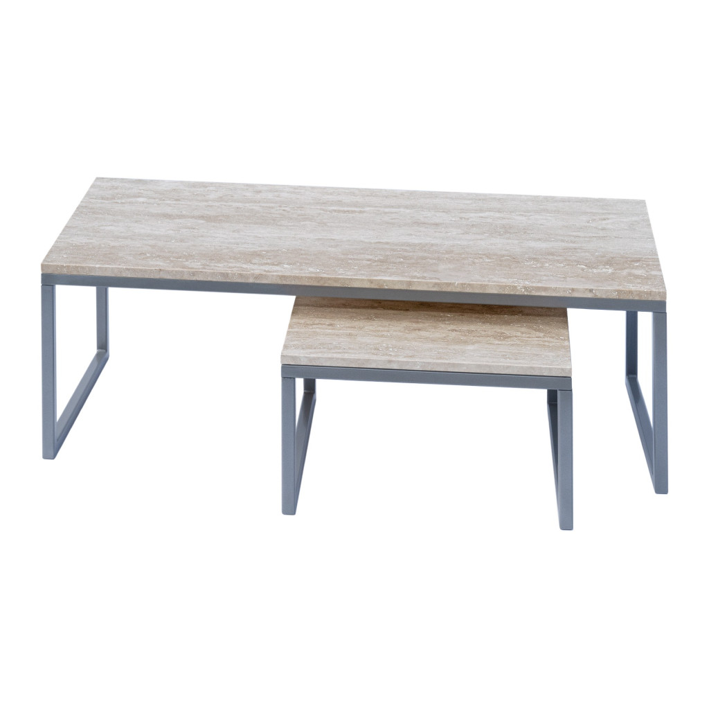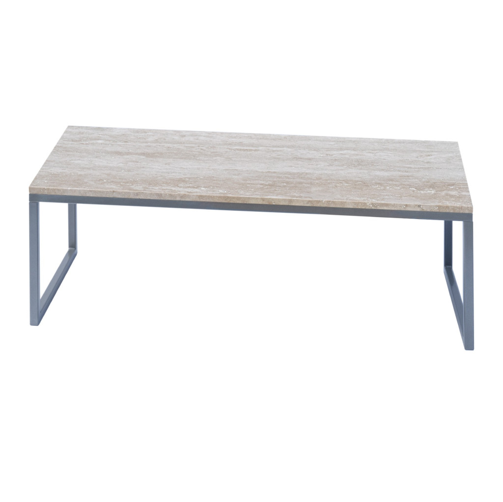 A travertin dohányzóasztal fém ezüst színű lábakkal.